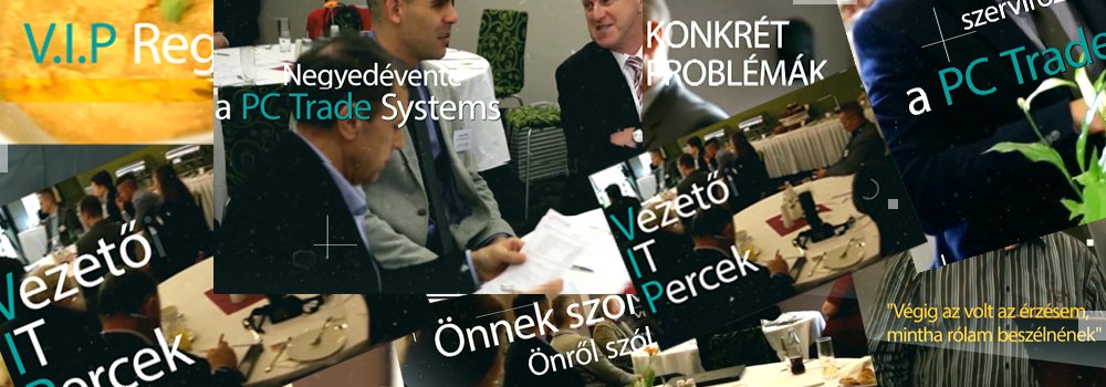 A VIP (Vezetői IT Percek) reggeli házigazdája a PC Trade Systems Kft, mely egyre erőteljesebben igyekszik a digitális forradalom kihívásaira felkészíteni a vállalkozásokat és a lakosságot. A 2002-ben alapított vállalkozás mind komplexitásban, mind kifinomultságban egyediségre törekszik, és a jövő technológiáit hordozó megoldásokat kínálunk innovatív konstrukciókkal.
